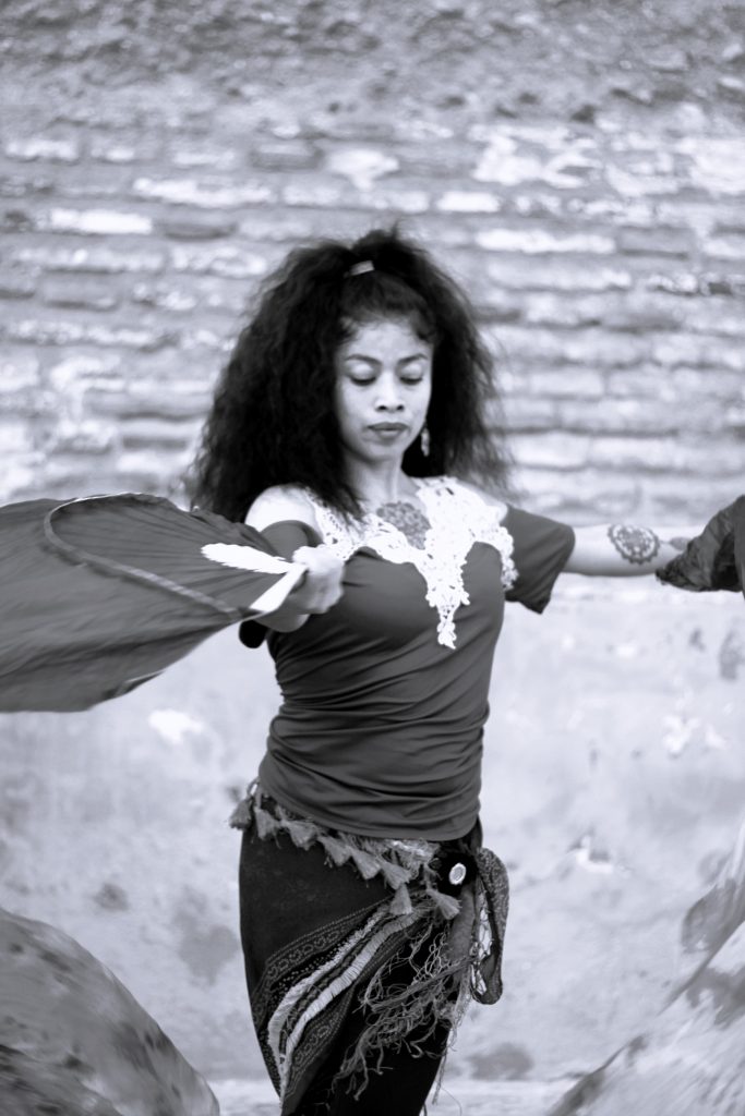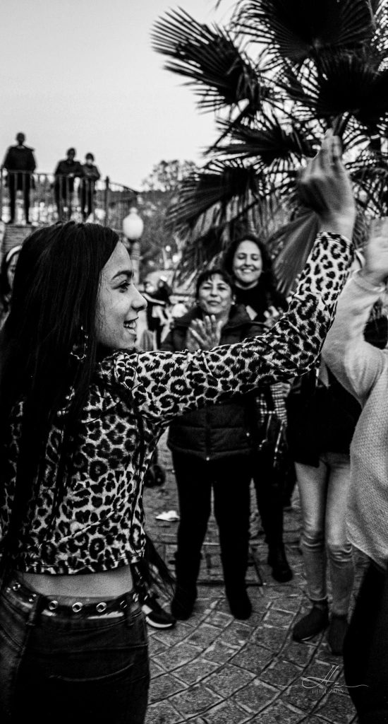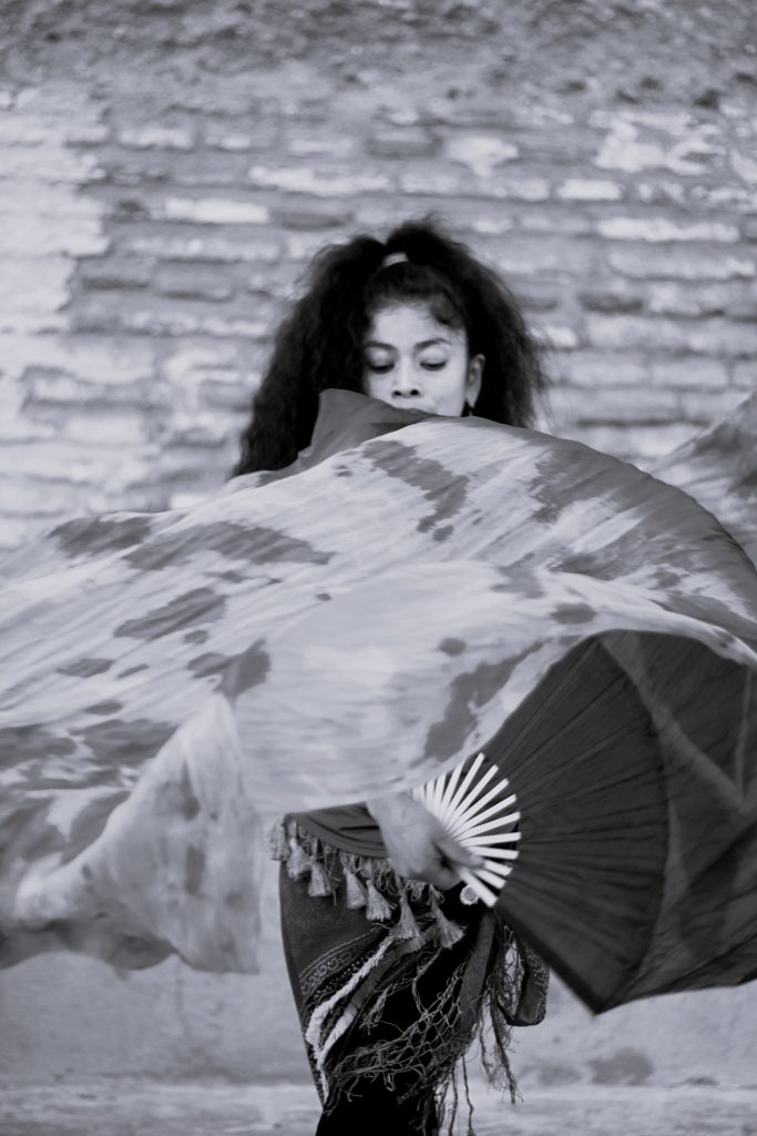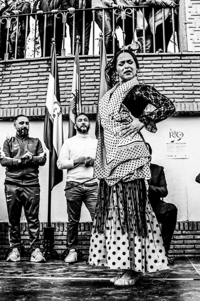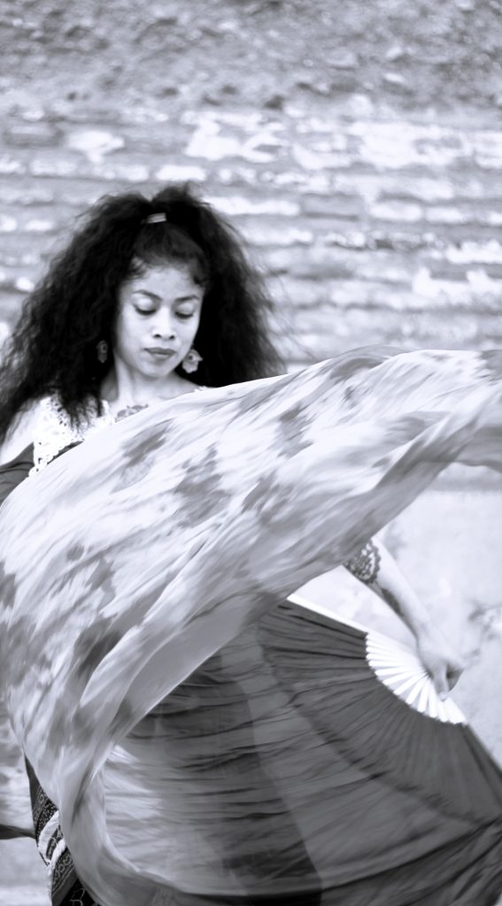 En las callejuelas de Granada, donde el rΓo Darro susurra secretos antiguos, danza una mujer con el corazΓ³n en las manos y la fuerza en sus movimientos. Se convierte en poesΓa con sus abanicos de tela que son pinceles, sus pasos versos que narran la historia de una fuerza indomable.